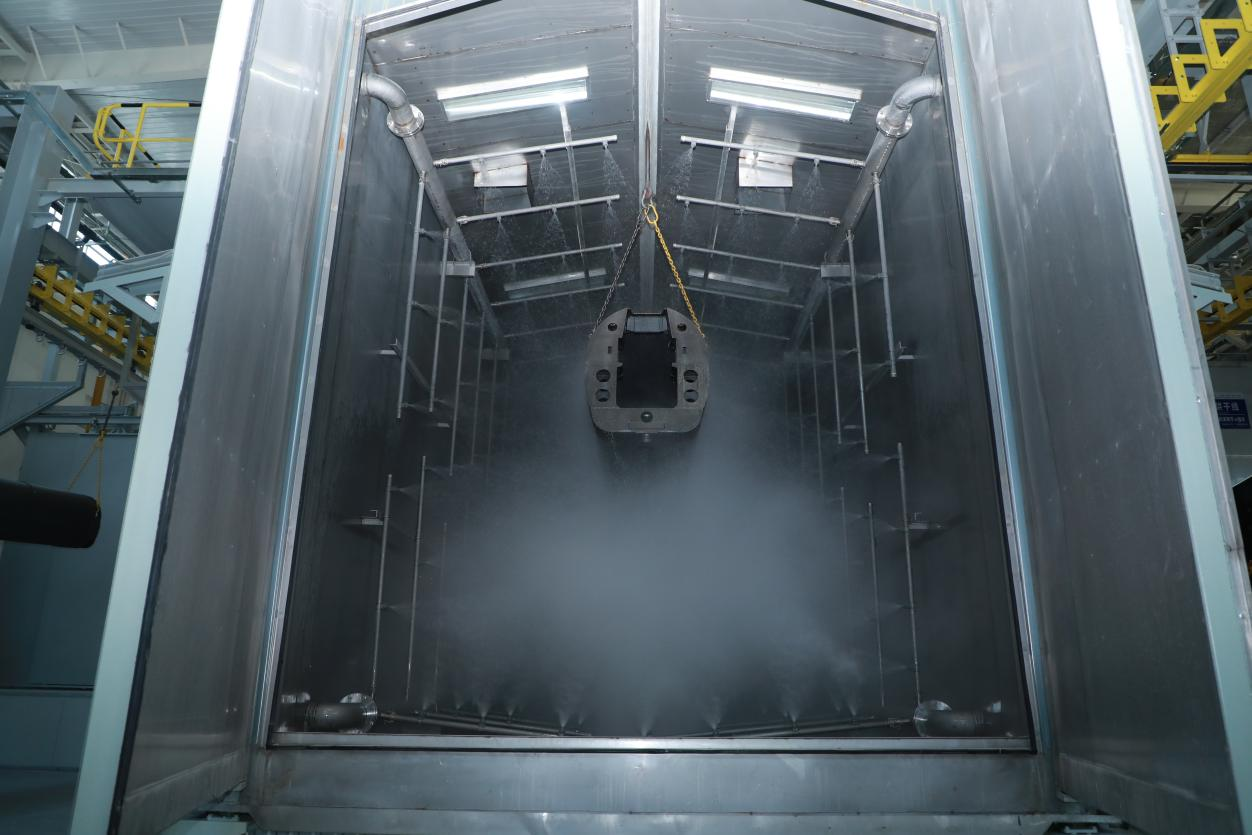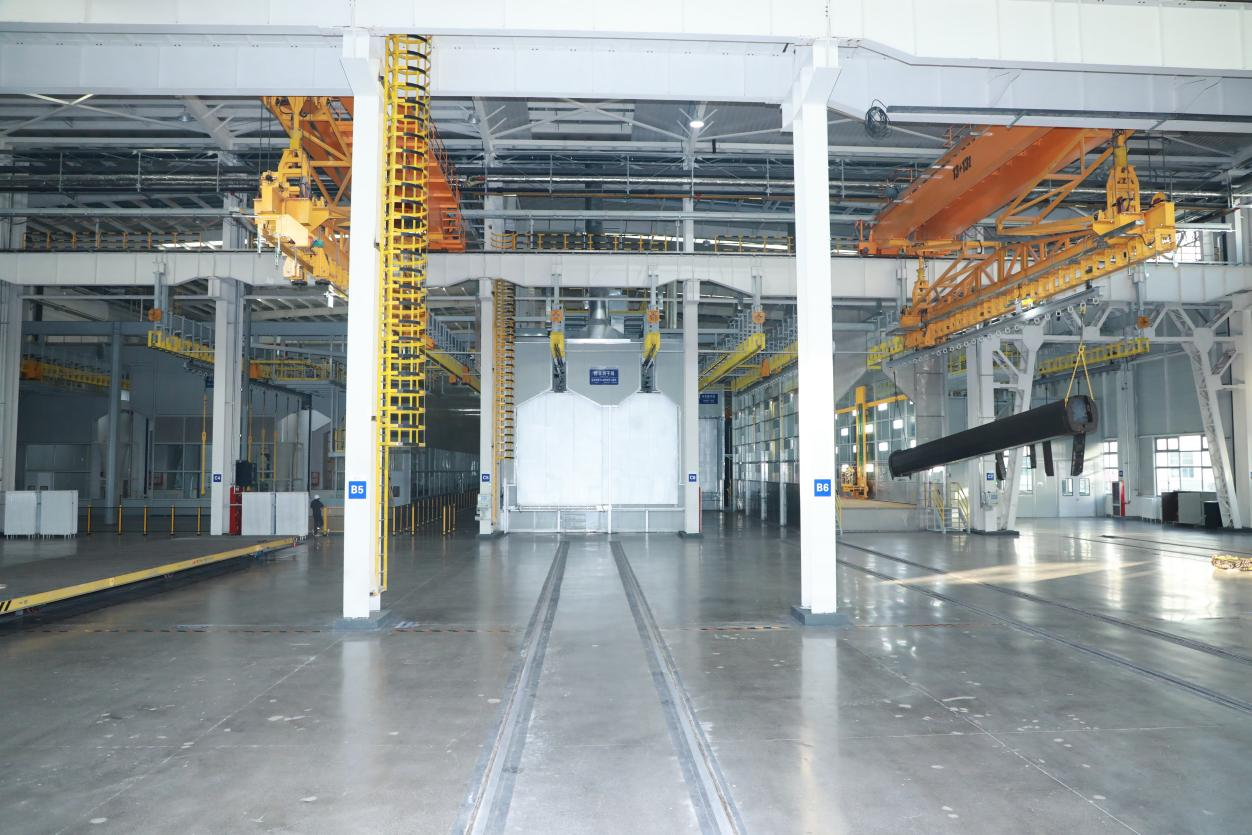 涂裝中心通過對(duì)標(biāo)國(guó)內(nèi)先進(jìn)裝備制造企業(yè),研判分析國(guó)家環(huán)保形勢(shì)、政策。以“機(jī)械化減人、智能化換人、智能化作業(yè)”為目標(biāo),以“設(shè)備、產(chǎn)線和產(chǎn)品自動(dòng)化、數(shù)字化、智能化、綠色化;業(yè)務(wù)流程數(shù)字化、信息化”原則建設(shè),打造為國(guó)內(nèi)一流的重型裝備制造業(yè)涂裝中心為目標(biāo)建設(shè),提升自動(dòng)化作業(yè)率,實(shí)現(xiàn)噴砂自動(dòng)化作業(yè)率≥96%,噴漆自動(dòng)化作業(yè)率≥92%,作業(yè)人員由160人優(yōu)化為80人。提升涂裝設(shè)備綠色化、智能化水平,采取先進(jìn)的噴粉、水性漆涂裝工藝,廢氣處理采用沸石轉(zhuǎn)輪+RTO處理工藝,達(dá)到廢氣污染防治要求,實(shí)現(xiàn)“超超低”排放要求。
